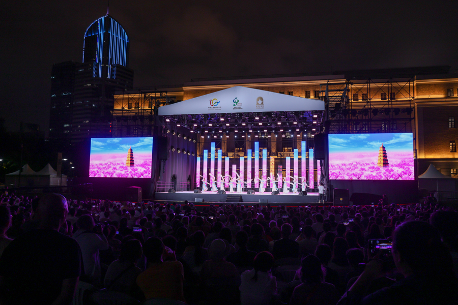 10月16日晚,黄浦区上海城市草坪音乐广场,第二十四届中国上海国际艺术节“艺术天空”板块推出吹来“艺海秦风”奏响三秦古韵新乐章——陕西演艺集团非遗专场演出活动,荟萃了陕西传统音乐、地方戏曲、民间舞蹈等多项非遗精髓。三秦古韵在金秋夜色中流淌,观众随节拍互动,氛围热烈,宣告2025上海城市草坪音乐会“秋之韵”正式拉开帷幕。