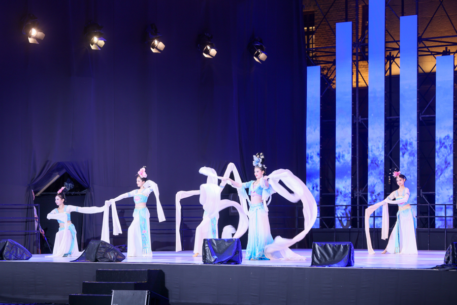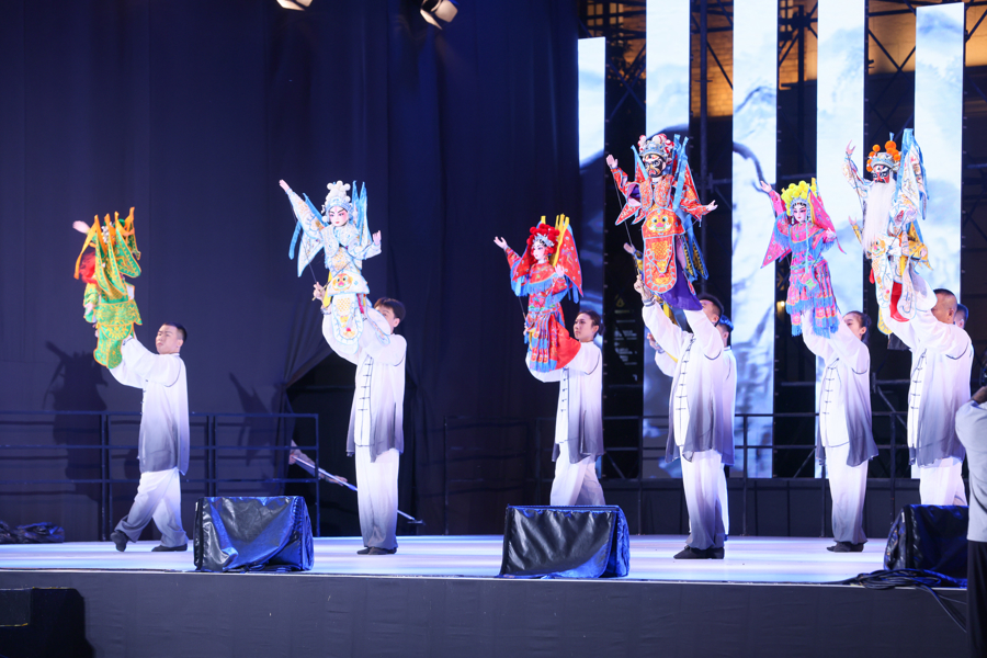 陕西省歌舞剧院歌舞团团长马艳丽介绍,这场户外演出聚焦陕西非物质文化遗产的当代转化,通过融合原创歌舞、民族器乐、精妙木偶技艺与高亢苍凉的陕北民歌,既呈现丝路长安的历史交响,亦展现黄土地的回响的民间生命力。