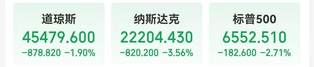 美股三大指数全线暴跌,截至收盘,纳斯达克指数暴跌3.56%,标普500指数大跌2.71%,道琼斯指数下跌1.9%。这是纳斯达克和标普500指数自4月以来的最大单日跌幅。