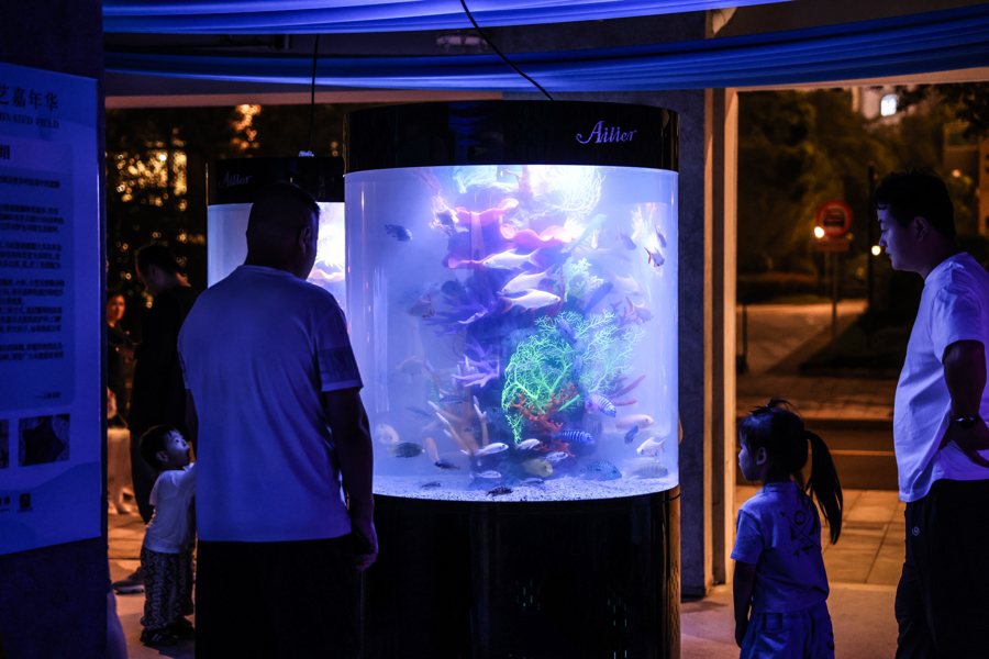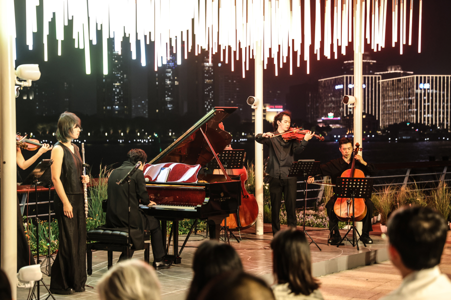 图为以光影作品《光愈林》为载体的光影互动舞台,由钢琴家罗威带来城市乐章治愈系之夜、上海音乐厅“音乐午茶”音乐会、山泽四重奏等结合光影场景的特色音乐演出在此轮番上演。