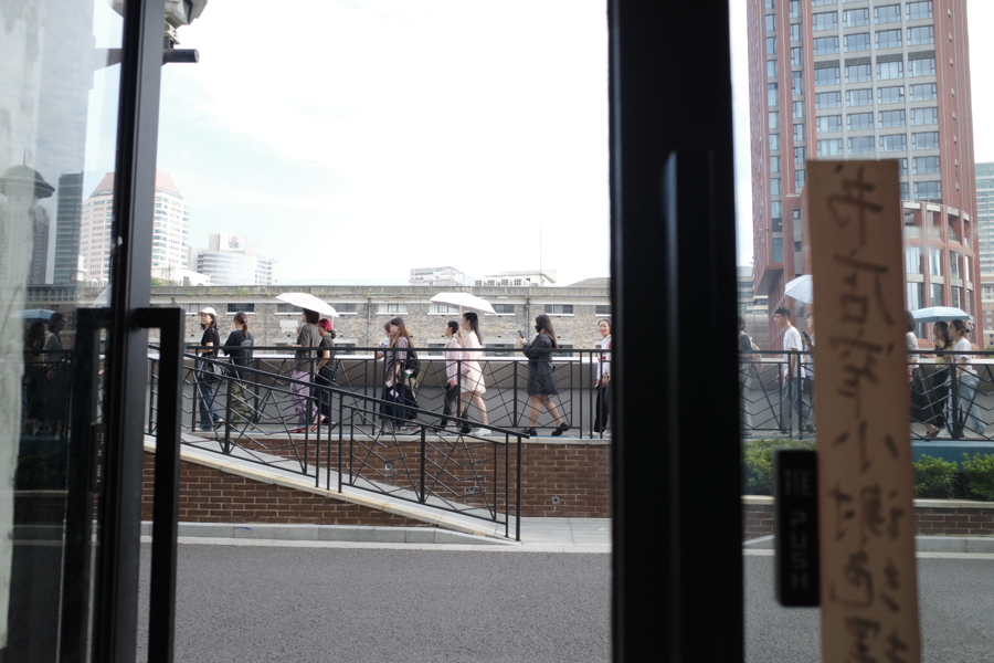 从书店向外望去,就是苏州河畔与游人们。(孙彦扬摄)